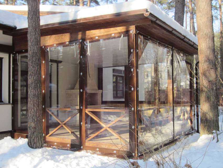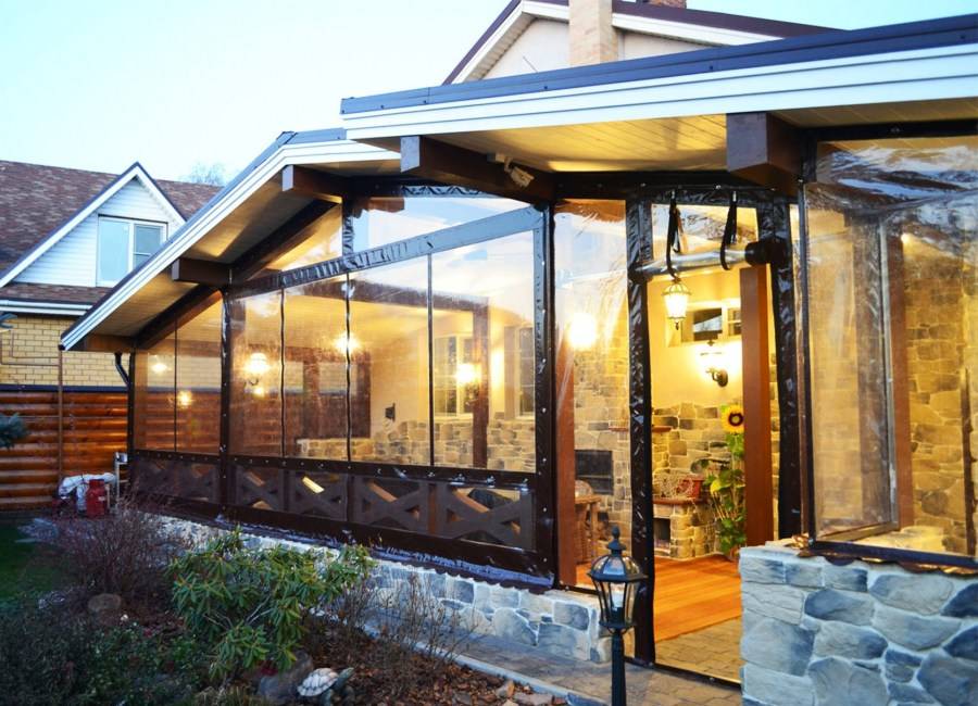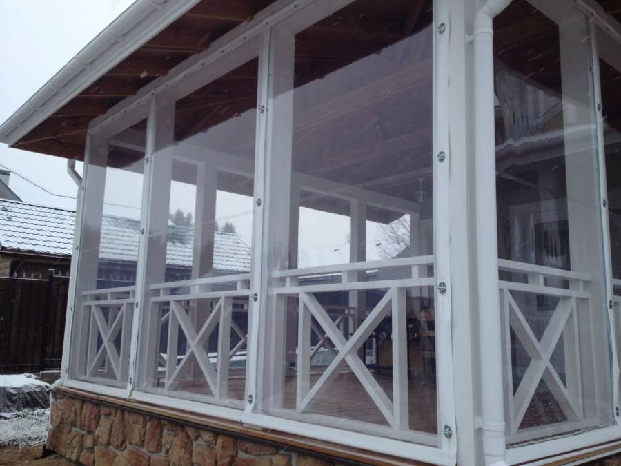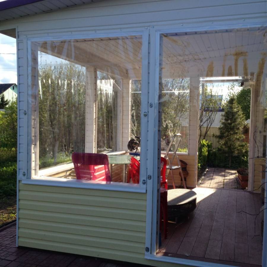 Обратите внимание! Толщина прозрачных штор для беседок и веранд из поливинилхлорида измеряется в микронах. Тенты для беседок и веранд чаще всего выполнены из материала толщиной 500 микрон. Этого вполне достаточно для защиты дачных строений и различных конструкций загородных домов