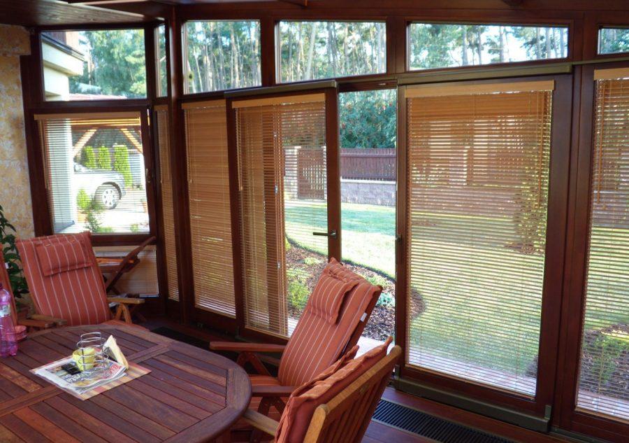 Для веранд нередко выбирают раздвижные панели с жестким каркасом в японском стиле, они крепятся к карнизу.