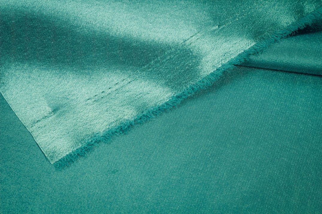 - Сатин — натуральный из шелка или синтетики. Производится с помощью атласного переплетения, именно поэтому лицевая сторона гладкая с атласным блеском, изнаночная — шероховатая и матовая. Продукт достаточно тяжелый, хорошо поддается драпировке. Чаще всего используется для пошива вечерних нарядных платьев и портьерной атрибутики, а также как обивочная ткань.