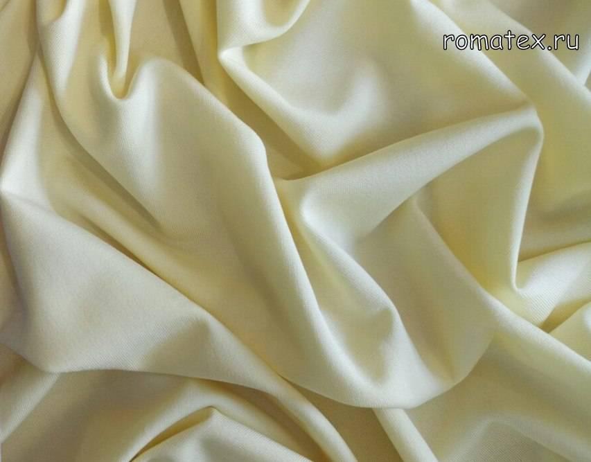 - Вискозный трикотаж масло (Венеция). Характеризуется хорошей эластичностью, плотностью, матовой поверхностью. Достаточно тяжёлый.