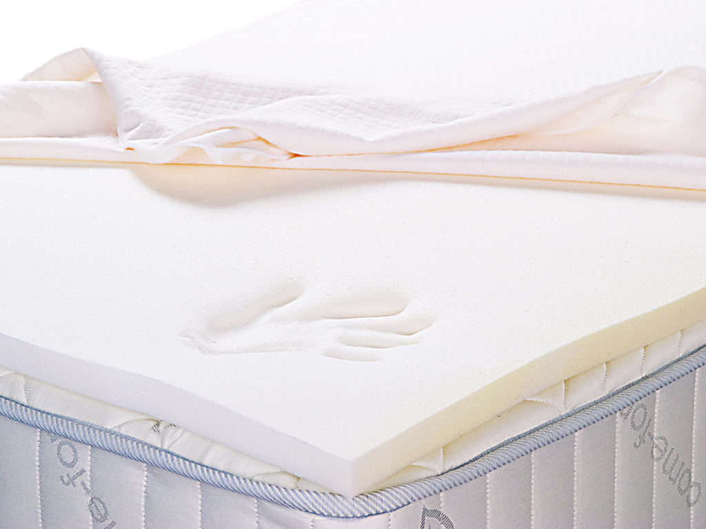 Пена с эффектом памяти (пена с эффектом памяти). Универсальный материал, обладающий способностью органично «течь» (не прорастать) под воздействием температуры и массы тела. Тонкий ортопедический матрас выравнивает поверхность кровати, придает ей мягкость, повторяет анатомические изгибы позвоночника, выполняет опорно-двигательную поддержку во время сна. Из недостатков: в жару продукт становится мягче; Не очень качественные варианты могут некоторое время издавать неприятный запах.