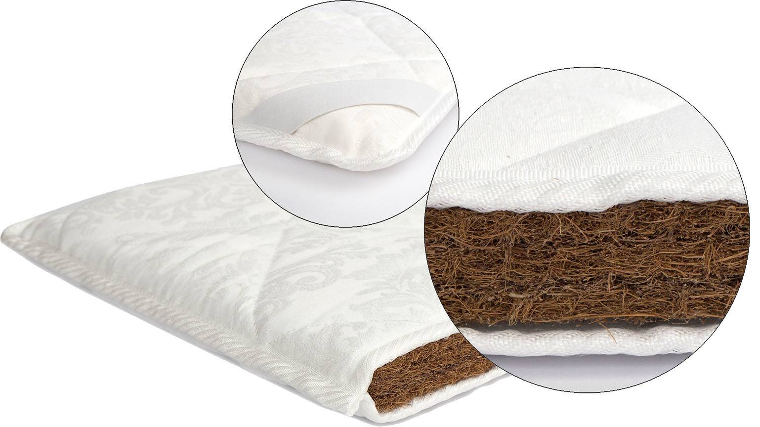 Детский матрас состоит из трех слоев: гречневой шелухи, пенополиуретана, кокосового коврика