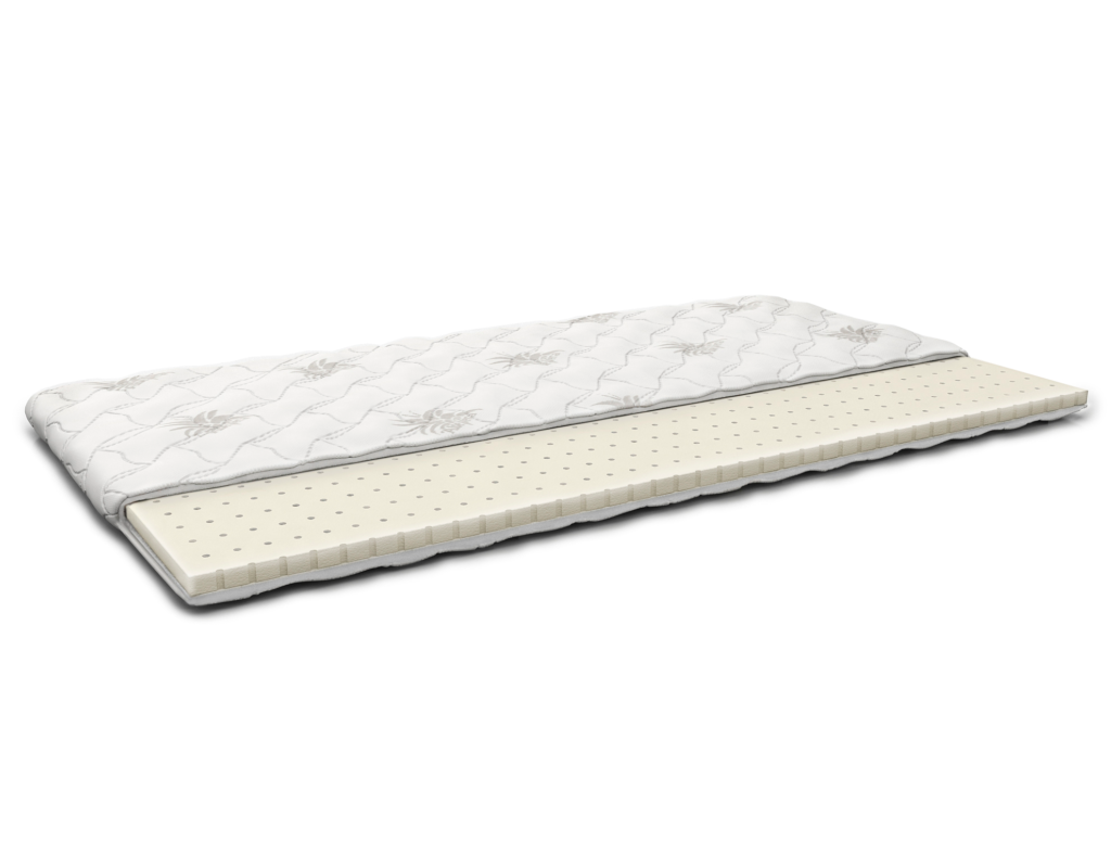 - Натуральный латекс отлично держит форму, относится к экологически чистым материалам, а также обладает прекрасными ортопедическими свойствами. Латекс отлично пропускает воздух, а также принимает температуру тела для повышения комфортности во время отдыха. Топпер из латекса великолепно поддерживает позвоночник и позволяет телу расслабиться.