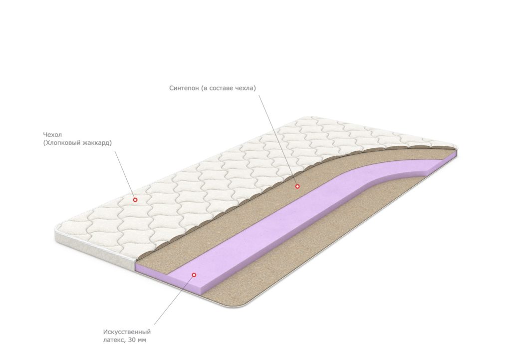 Современный тонкий матрас изготовлен из искусственной пены, обладающей повышенной эластичностью и упругостью. Такой материал отличается хорошими гигиеническими характеристиками — пропускает воздух и препятствует размножению болезнетворных бактерий. Высота наполнителя равняется 3 см. Топпер к матрасу крепится при помощи эластичных резинок.