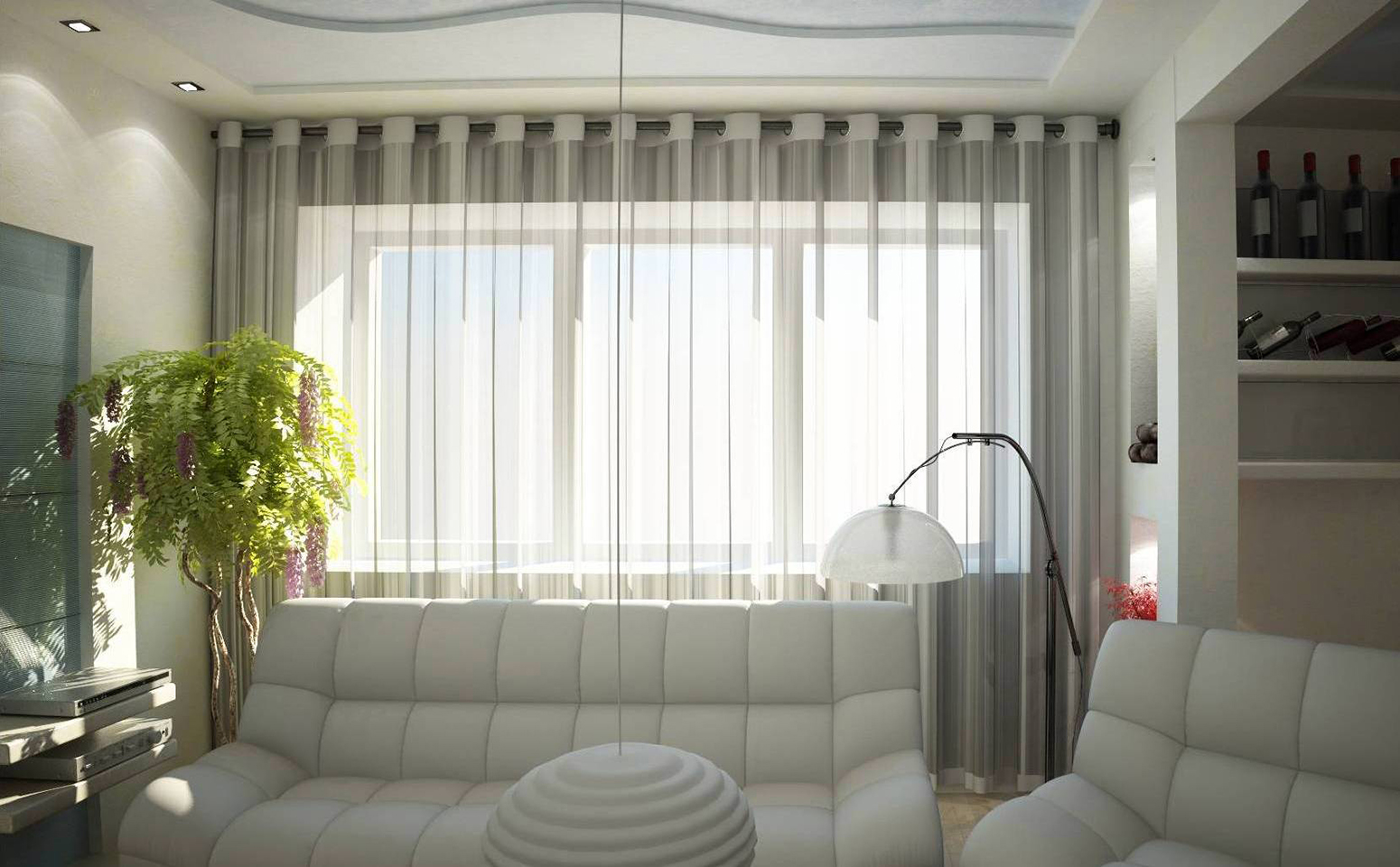 Тюль чаще всего используют в гостиной со шторами, но иногда и как самостоятельную единицу. Подходит для всех стилей, от модерна до классики, а лен и хлопок дополняют хай-тек или минимализм.
