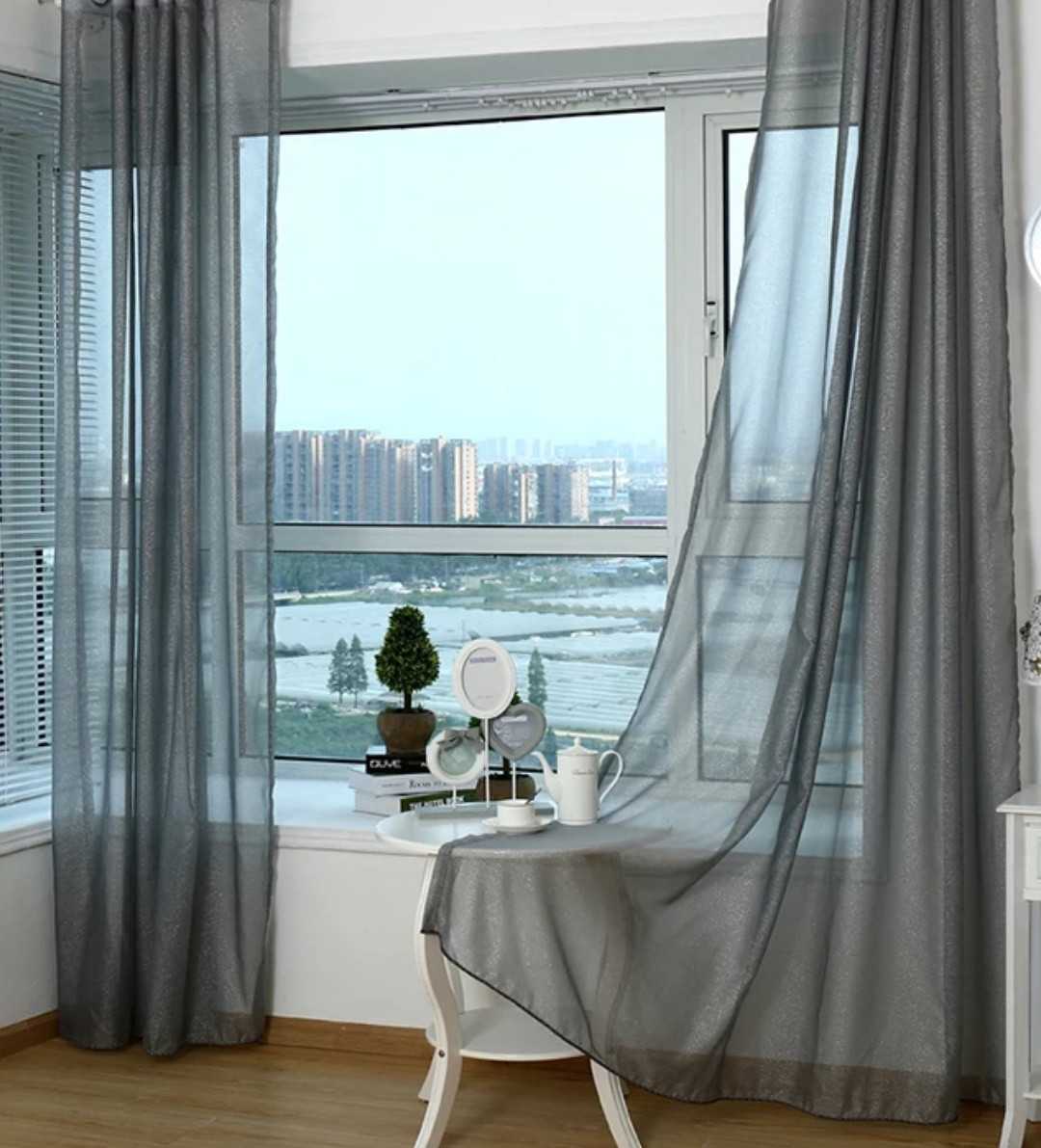 Длина сетчатых занавесок может быть разной. У занавесей светлой палитры она может превышать высоту стен, а у штор ярких, насыщенных цветов — достигать пола.