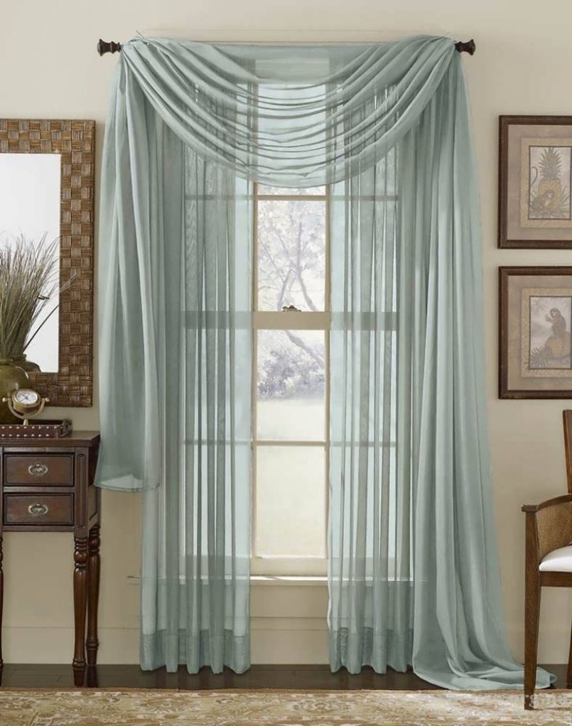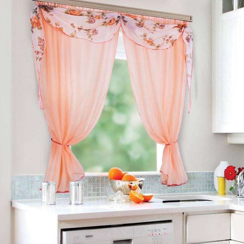 Из прозрачного материала можно изготовить и длинные, и короткие шторы. Если в доме есть маленькие дети и домашние животные, лучше не делать занавески из тонкой ткани до пола, иначе нижний край быстро придет в негодность. Для кухни лучше сделать гладкие шторы или придать полотну небольшие складки. Можете сделать занавеску в римском стиле – несколько шнуров приподнимают ткань кверху, образуя красивые горизонтальные сборки.