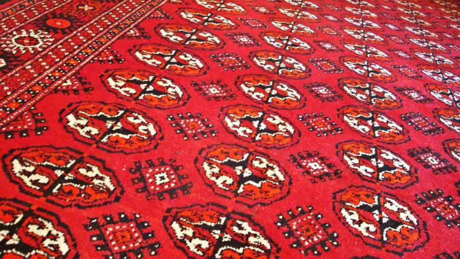 Туркменские ковры ценятся за их качество, насыщенные цвета и прекрасные геометрические и цветочные узоры. Они традиционно были ярко-красными и украшенными черно-белыми узорами.