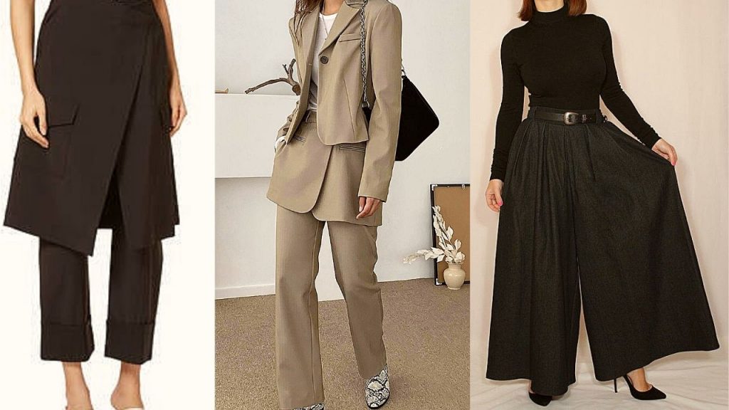 - Внешний вид: Юбка-брюки выглядят более изящно и женственно, чем обычные брюки. Благодаря элементам юбки, таким как разрезы, юбка-брюки создают впечатление легкости и грации.