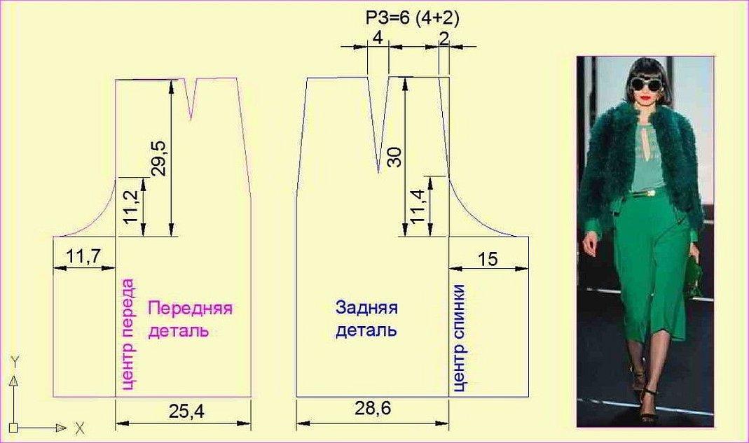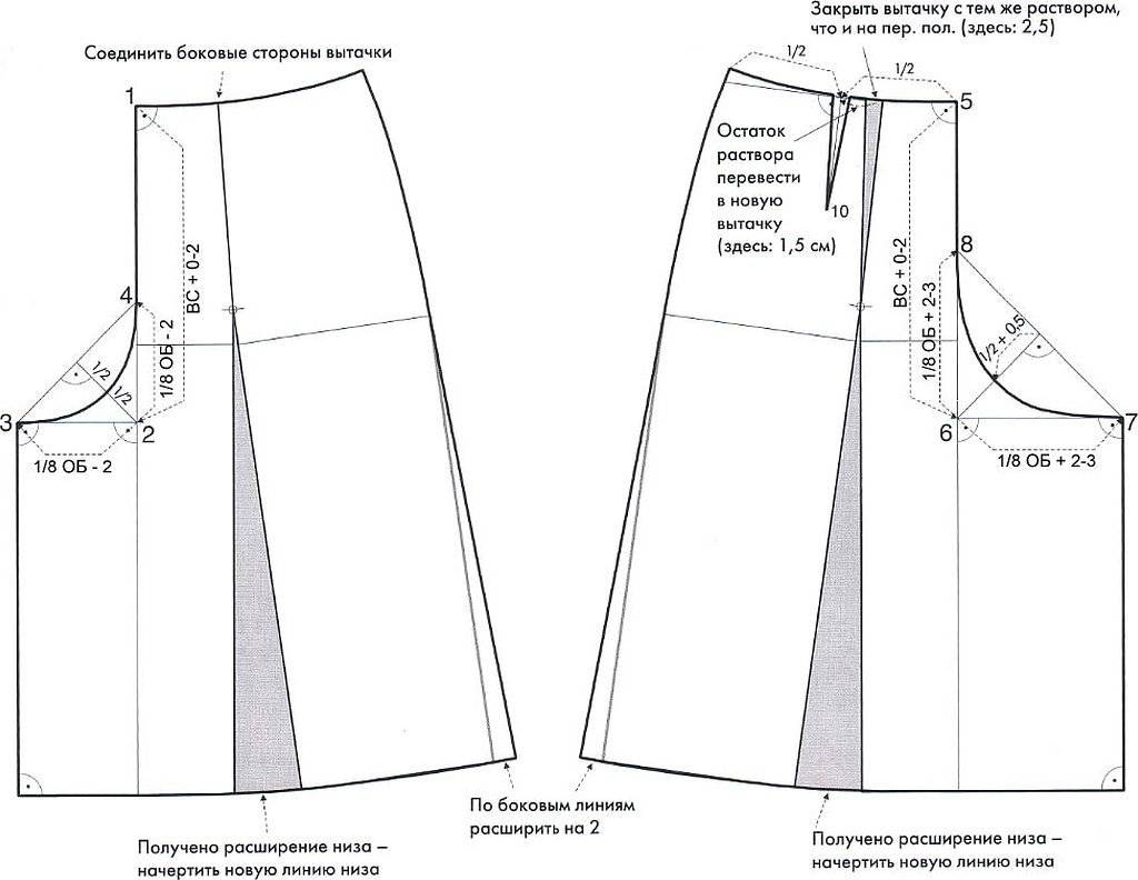 Обхват бедер поделить вдвое. К полученной цифре прибавить: для задней поверхности 27,5 см, для передней 17,5см.