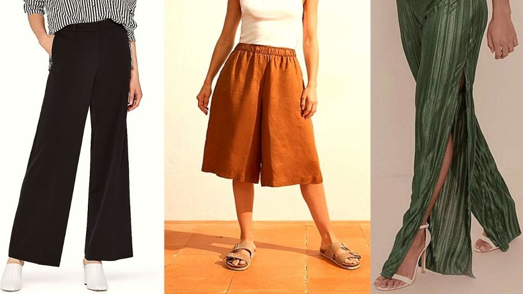 - Кулоты — широкие брюки до середины икры или ниже, без разрезов.