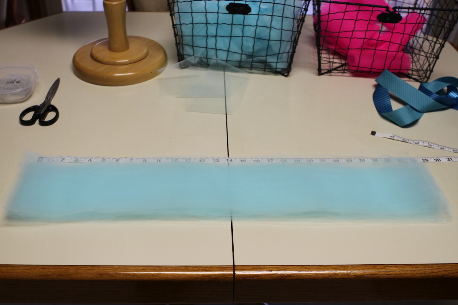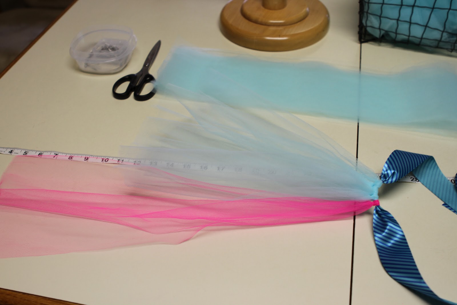 - Фатин разрезать полосками по 25 см в ширину и по 0,5 м в длину.