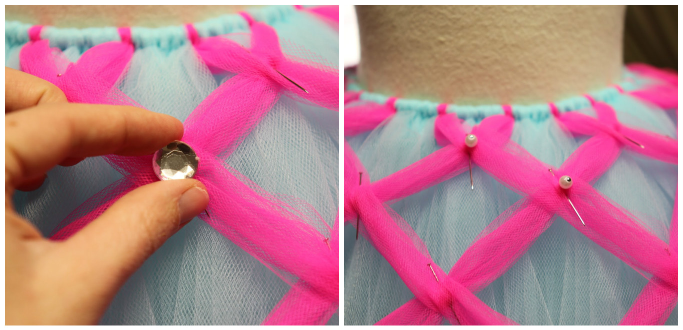 - Пришивание к резинке всех фатиновых юбок.