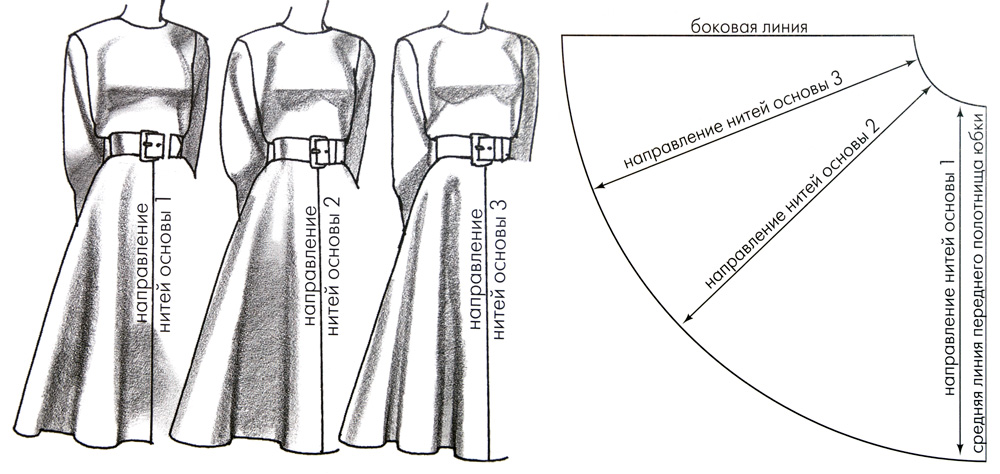 Влияние направления нитей основы на деталях юбки на положение ее фалд