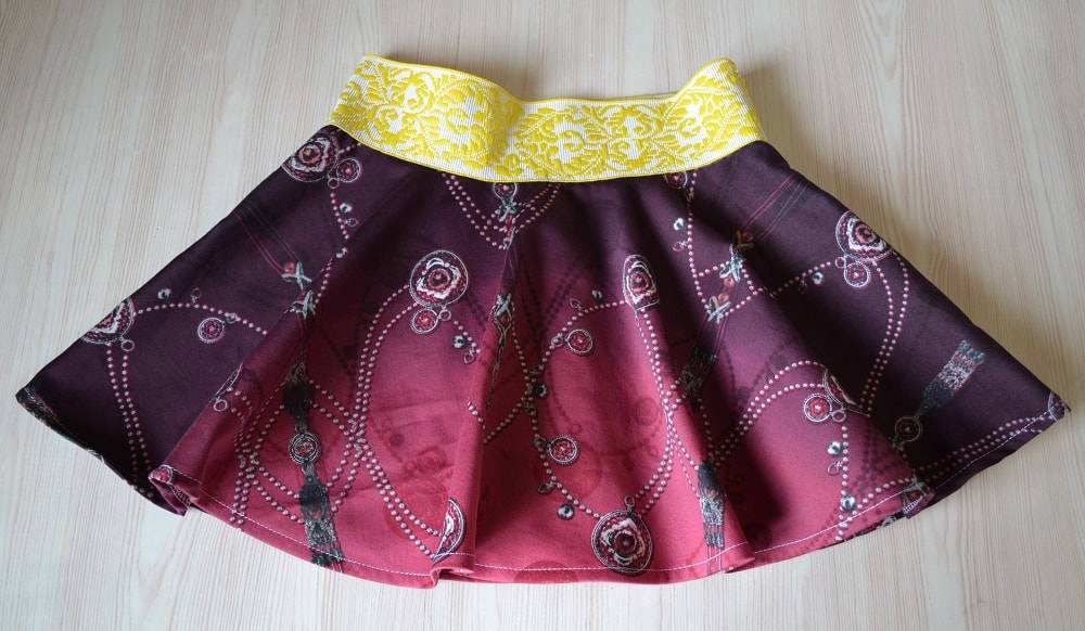 Так выглядит юбка-солнце с поясом резинкой для девочки с лицевой стороны.