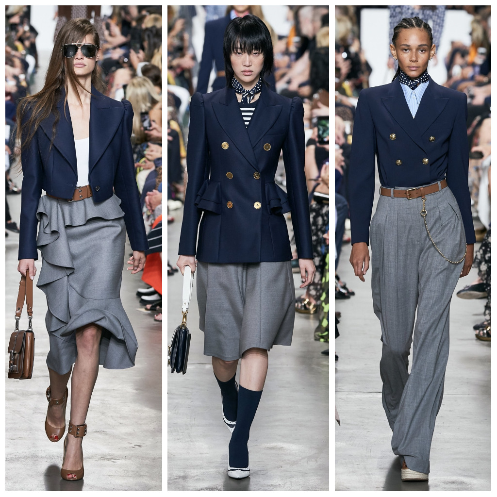 Очень спокойное и лаконичное сочетание, которые можно смело адаптировать под офисный стиль. В качестве примера сразу несколько образов с показа Michael Kors.
