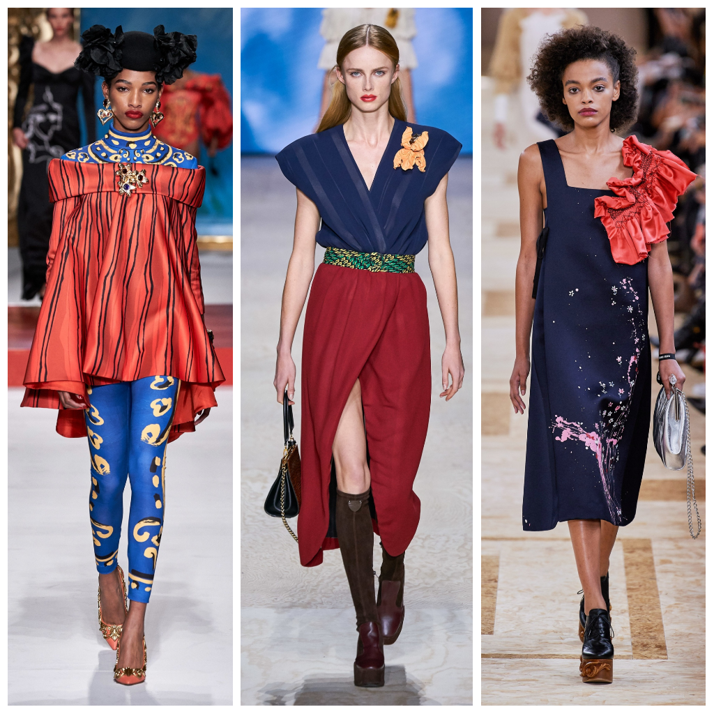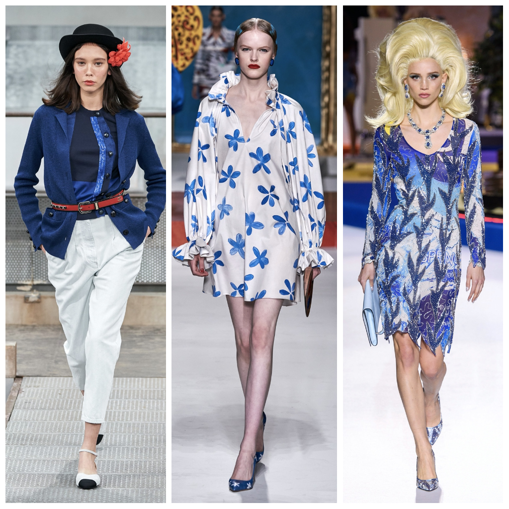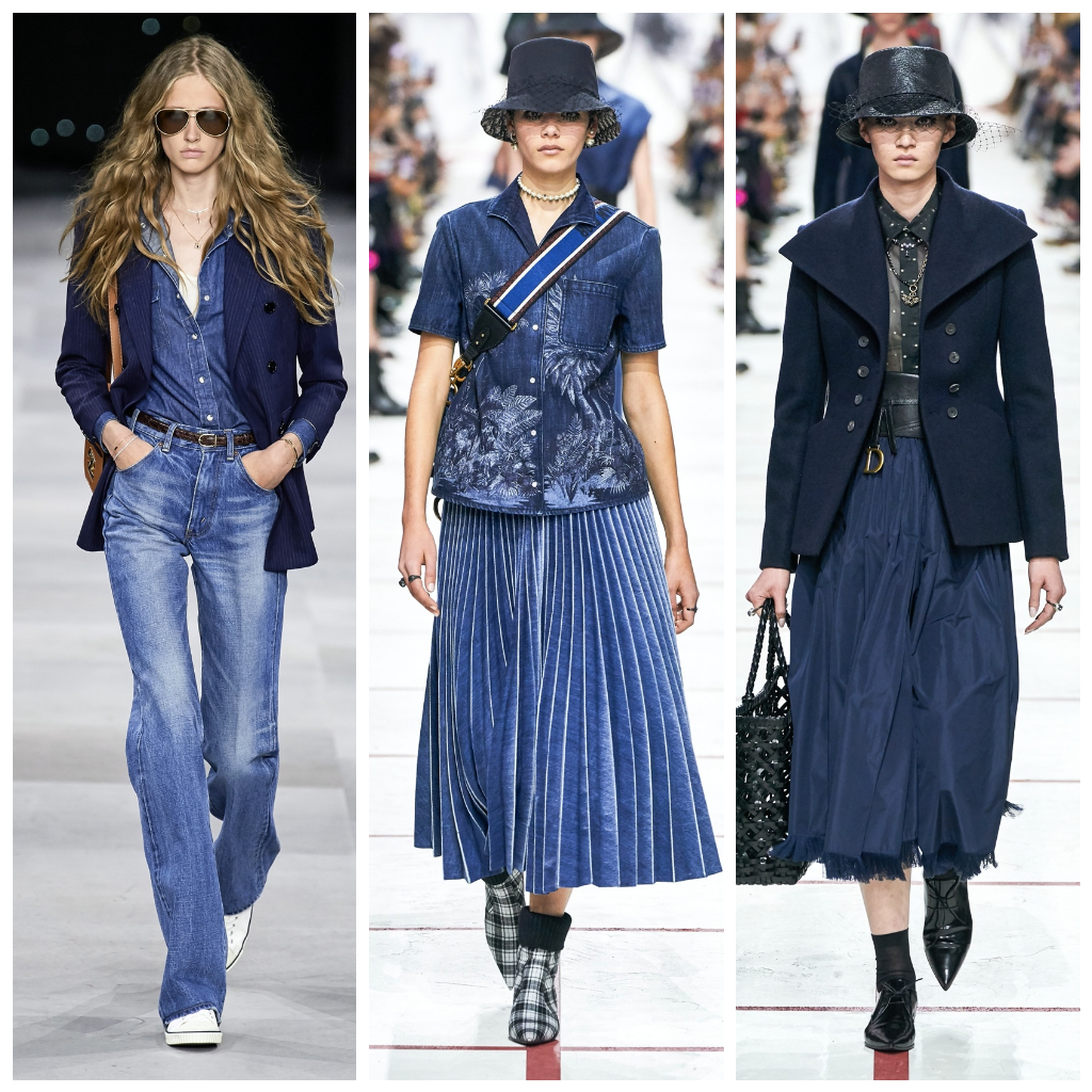 Обратите внимание на образ Celine, в котором доминирует синий цвет, но за счет использования различных оттенков наряд смотрится гармонично.