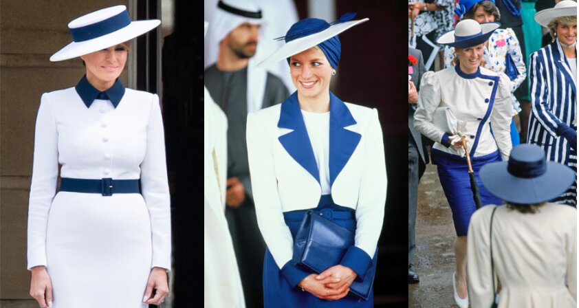 Очень сложно приехать в Великобританию, не быть англичанкой, быть славянской моделью с эротическими фотосессиями в анамнезе, да еще и женой этого раздражающего Трампа, и при этом не получить ушат дерьма утренней овсянки с комочками в прессе. Уж к Мелании претензий не было! Кстати, когда я демонстрирую вам все эти наряды в Англии, я готова еще раз расписаться под словами, что Кейт Миддлтон (при всей моей любви и уважении) – не икона стиля. Ее образы уместны, часто удачны и очень красивы, выверены, но – они не модные. Образы Мелании – пример того, как идеально сочетать в наряде модные тенденции и протокол.