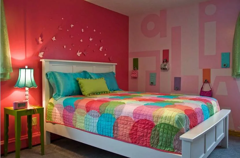 Для детской спальни можно смело использовать цветные и яркие изделия с различными принтами. В таком случае лучше оформлять комнату неброско, чтобы покрывало играло роль главного акцента