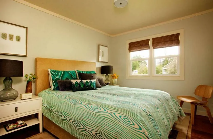 Необычный способ придать разнообразие спальному месту – использовать двухстороннее покрывало. В светлой комнате яркий текстиль может стать основным акцентом в дизайне. Переворачивая покрывало разными сторонами, можно быстро и легко поменять оформление спальни.
