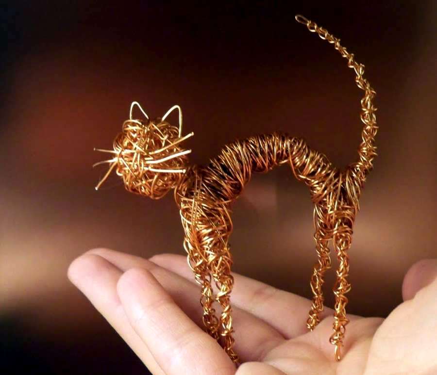 Еще котик – далеко не пушистый, зато реалистичный, из медной проволоки.