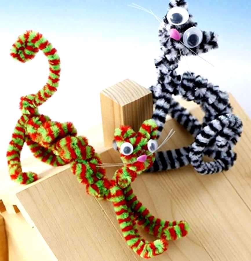 Из пушистой проволоки (синельной) получаются такие вот пушистые котики. Модель рекомендуется для начинающих.