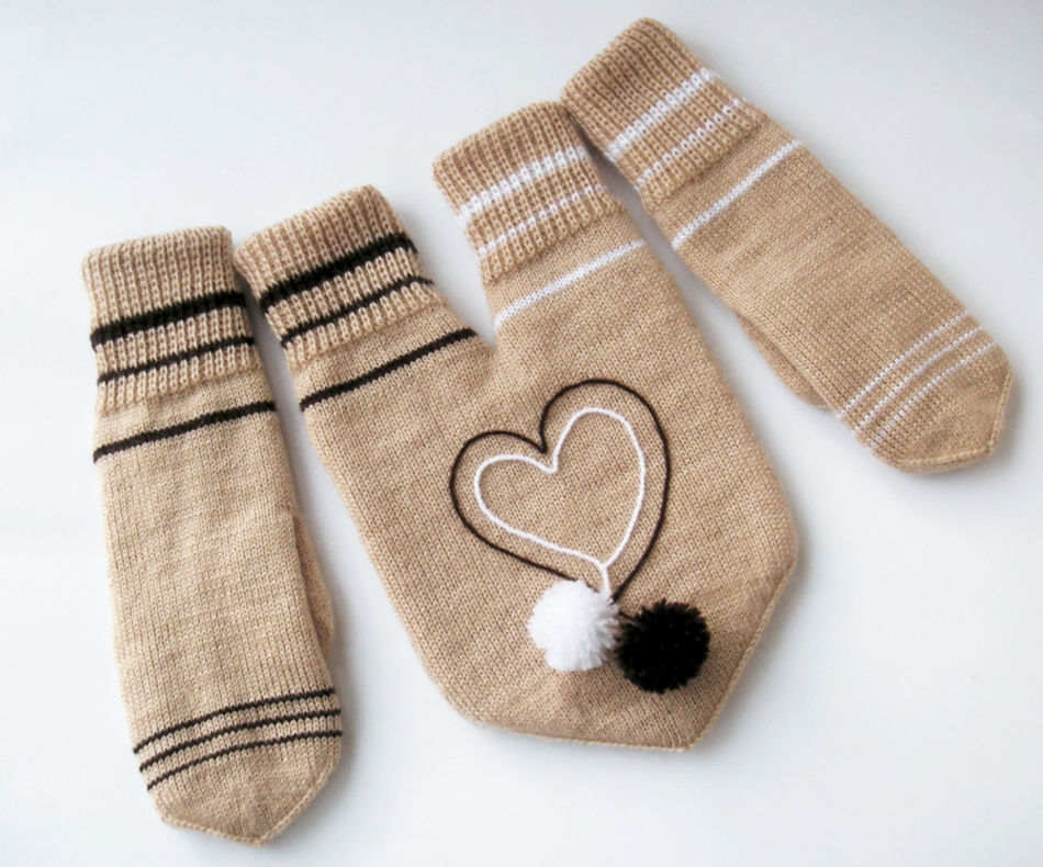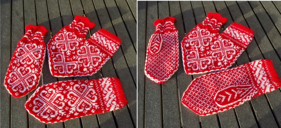 Интересные модели варежек для влюбленных привлекают рукодельниц оригинальностью исполнения и полем для творчества в декорировании.