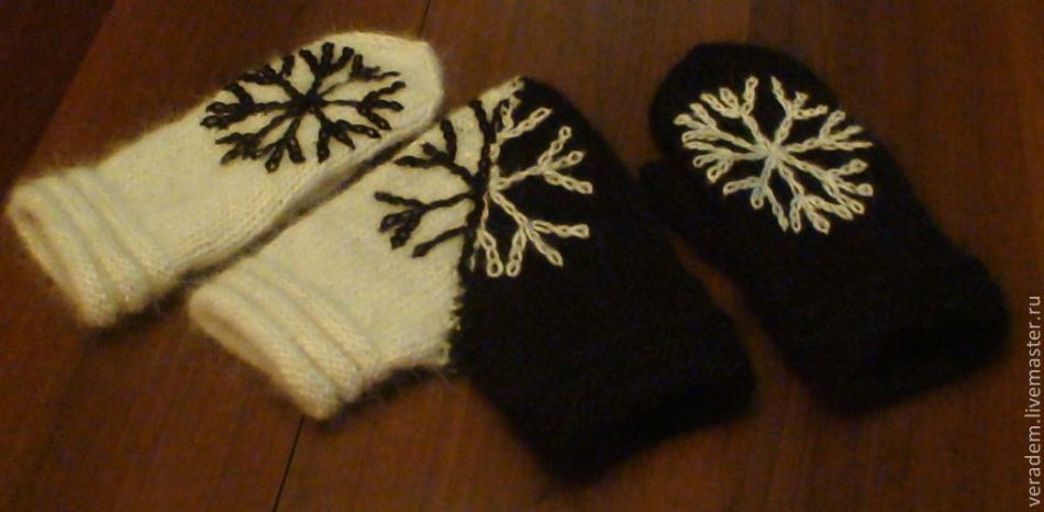 Для внешней варежки подойдет и тонкий мохер, если вы решили украсить ее ажурными мотивами. А для внутренней — шерсть или полушерсть даже из распущенных изделий, - для контраста ажурного узора внутреннюю варежку выполняйте из более темной/светлой пряжи, чем внешнюю,