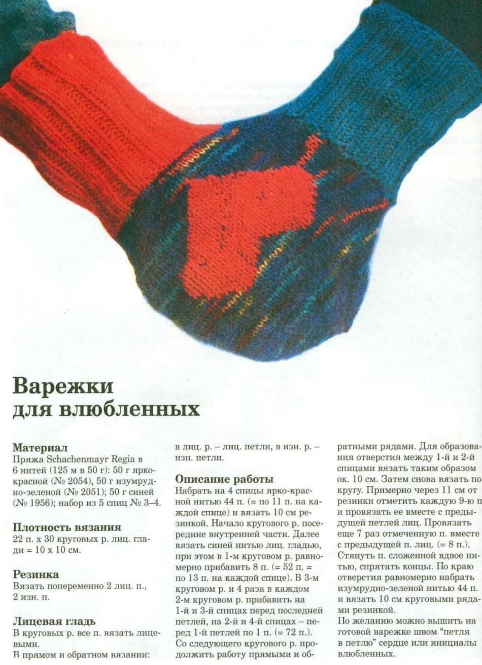 Первые свяжите разных размеров, если руки у мужчины и женщины сильно отличаются по параметрам. В противном случае подойдут одинаковые варежки. Связанные спицами изделия хорошо тянутся, потому молодым людям с почти одинаковыми кистями рук будет уютно в них.