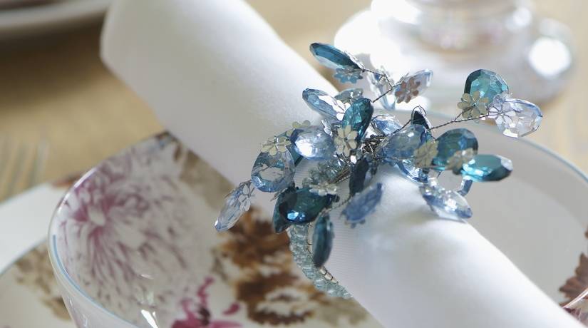 Еще одним необычным и вполне доступным подручным материалом для изготовления колец-держателей для салфеток можно назвать проволоку. Этот гибкий и крепкий материал можно использовать в качестве основы. При помощи инструмента круглогубцев вы можете придавать проволоке любую форму. В качестве декоративного элемента можно использовать разноцветные камни, бусины или иные украшения.