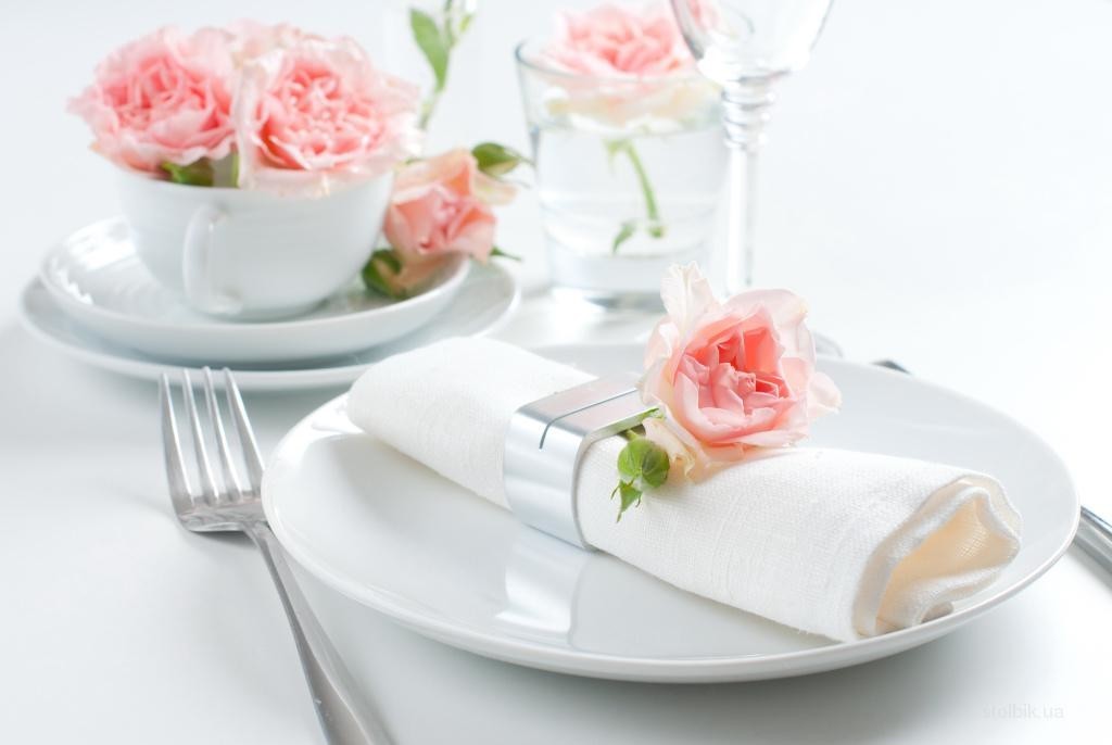 Очень красиво и оригинально выглядят салфетки, оформленные в специальные кольца. Такое декоративное дополнение позволит сделать композицию стола более завершенной и торжественной.