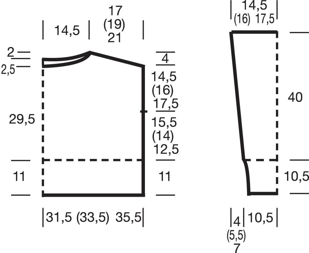 Не забываем, что эта модель оверсайз, т.е. свободная, в выкройке учтены необходимые прибавки для каждого размера. Если вы сомневаетесь, какой размер вам надо вязать, то прибавьте к вашей окружности груди 25 — 30 см. И ближайшее к этому значение на выкройке и будет ваше., и соответственно размер тоже.