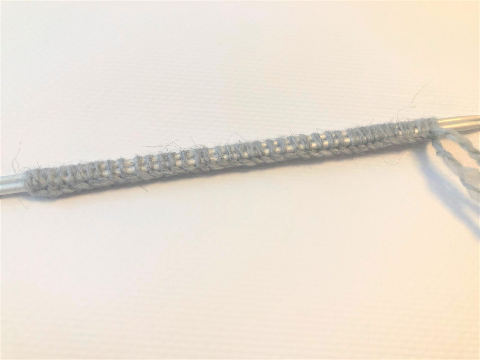 Набрать 22 петли и провязать 2 ряда платочной вязкой.