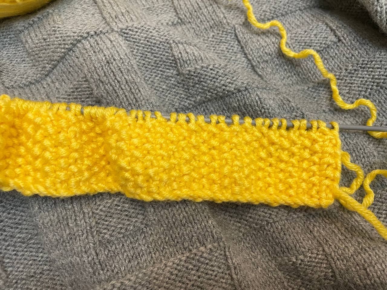 - Свяжите первый ряд – провяжите 10 столбиков без накида. Провяжите еще 2 ряда без прибавок.