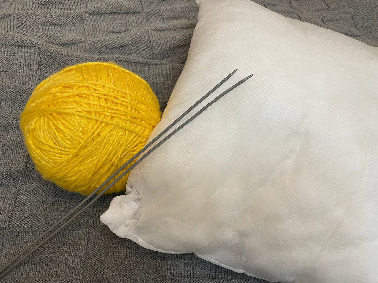 - Резинка 1×1 — это узор, в котором чередуются лицевые и изнаночные петли по 1 в попеременном порядке. Резинка 1×1 придает подушке эластичность и интересный текстурный вид.