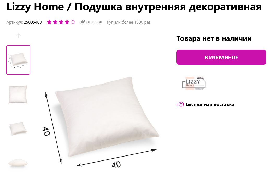 Саму подушку покупала на Валдберис, иногда продаются в Фикс прайсе, Леруа Мерлен (увидела уже позже, там даже дешевле). Я взяла ее за 159 рублей.