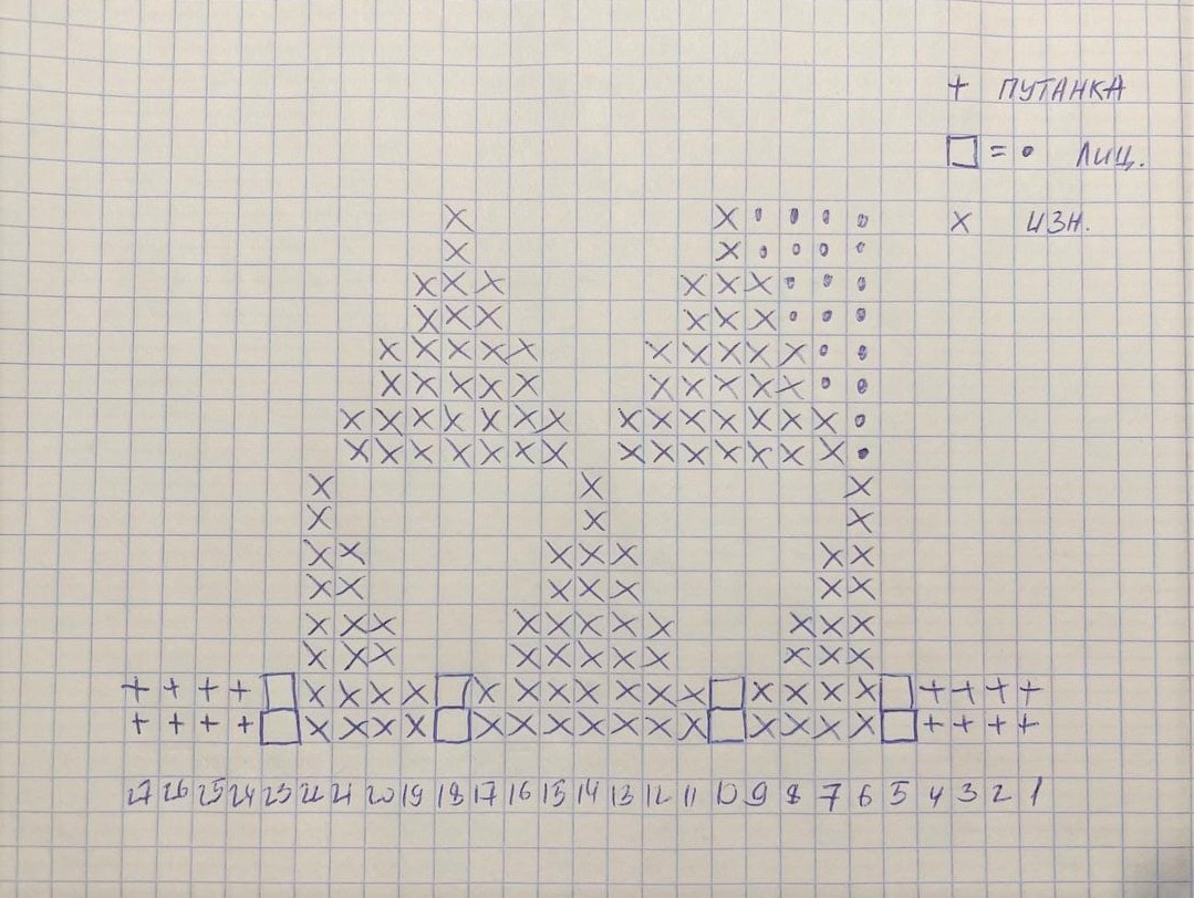 Здесь пустой квадратик и точка являются обозначением лицевой петли. Я сделала так, чтобы визуально было понятнее. Но эти два символа – одно и то же.
