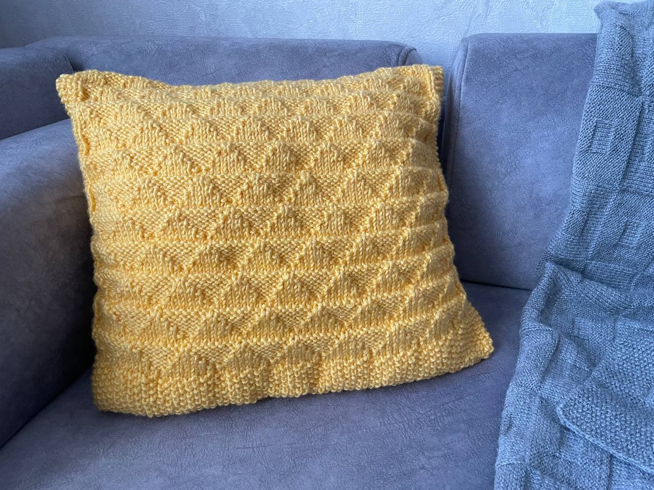 Чехол для подушки на пуговицах ромбами-треугольниками. Схема очень простая: только из лицевых и изнаночных петель.