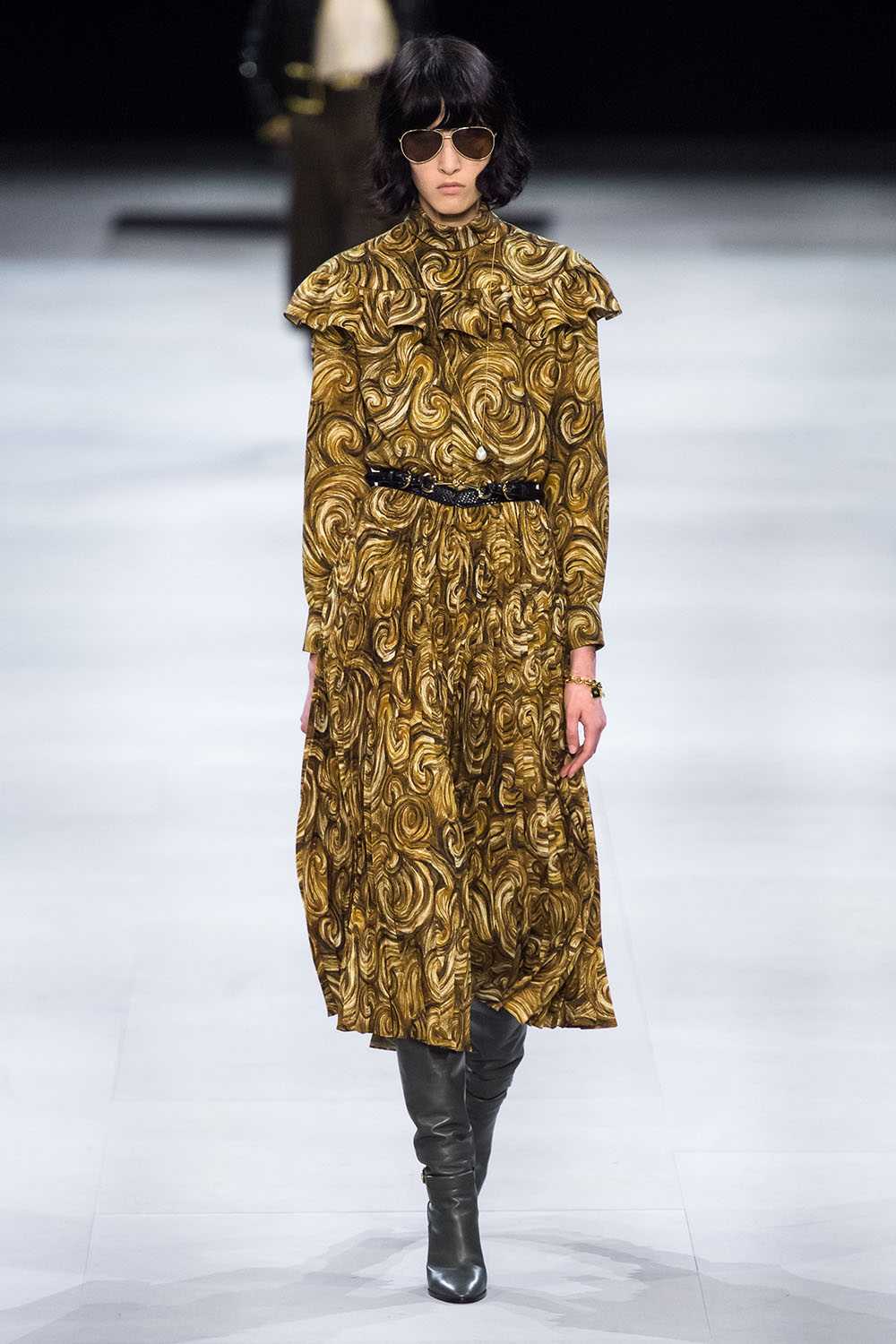 Фасоны платьев с расклешенной юбкой – это самый женственный и изящный тренд сезона. Его могут взять на вооружение романтичные барышни, а также девушки, которые хотят скрыть живот – в таком случае следует ориентироваться на завышенную линию талии. Такое платье может дополнительно обладать плиссировкой на юбке – еще одной безоговорочной тенденцией сезона.