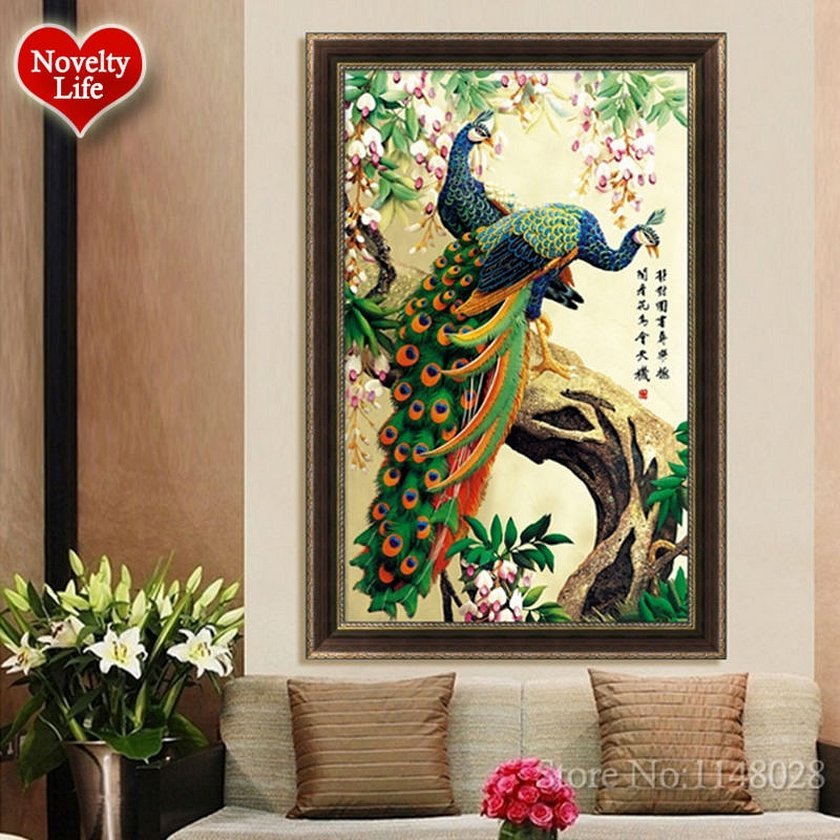 Павлинов очень часто выполняют алмазной мозаикой или полностью вышивают бисером. В любом случае эта птица смотрится роскошно.