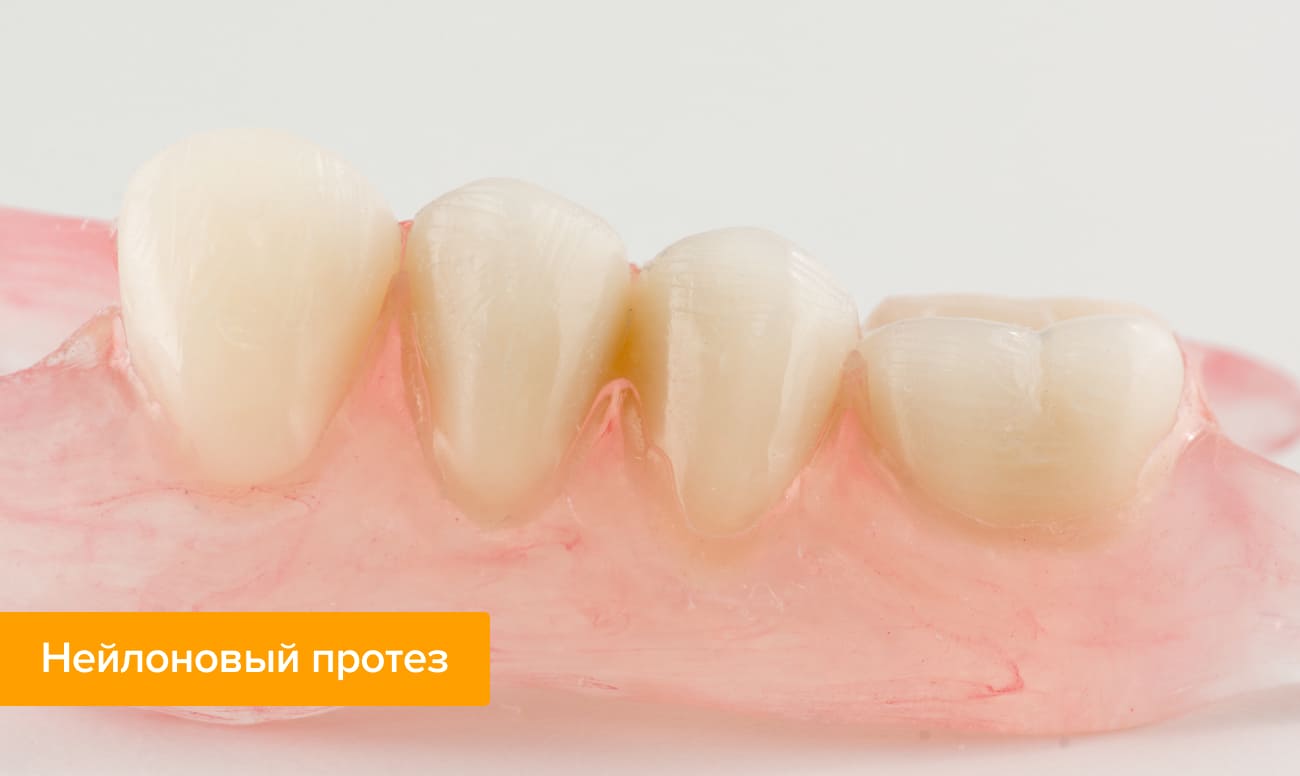 Цена на зубной протез из нейлона выше, чем на аналог из пластмассы. Частичное замещение отсутствующих зубов в Москве обойдется в сумму около 15 000 — 20 000 рублей, полное — около 50 000 рублей