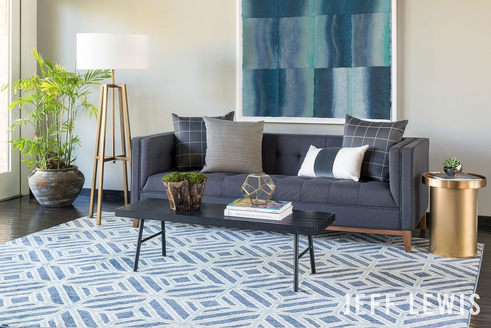 Здесь важно не переусердствовать. Если в интерьере и без того немало различных паттернов и фактур — стоит предпочесть простой однотонный ковер