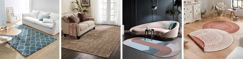 - Для просторных помещений подойдет ковер с большими размерами или 2-3 поменьше.