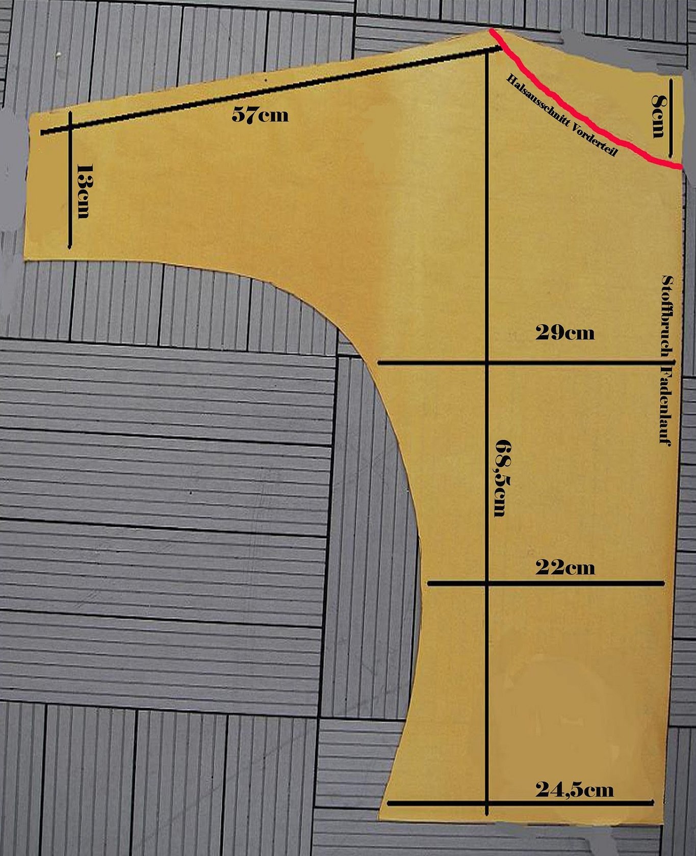 1. Раскроите детали цельнокроеного рукава из выбранного материала.