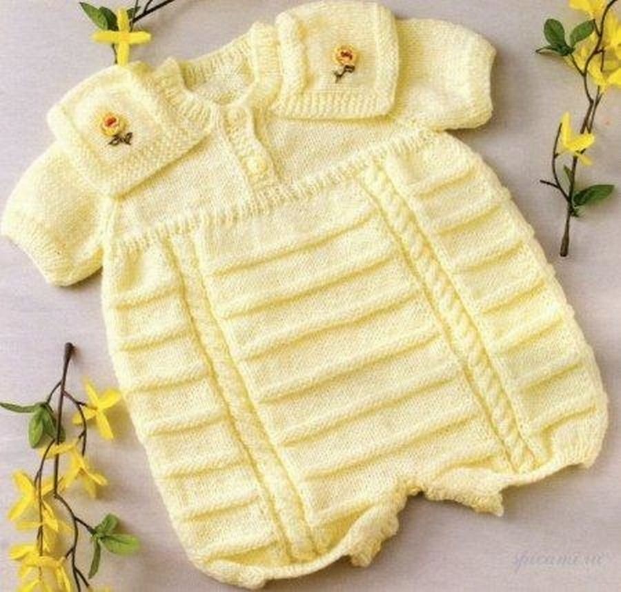 Вязанный боди. Прекрасно подойдёт в зимний период. Мягкие швы боди не доставят неудобств ребёночку и он будет носить его с удовольствием. Также, такую вещь можно надеть на выписку из роддома в зимнее и холодное время года.