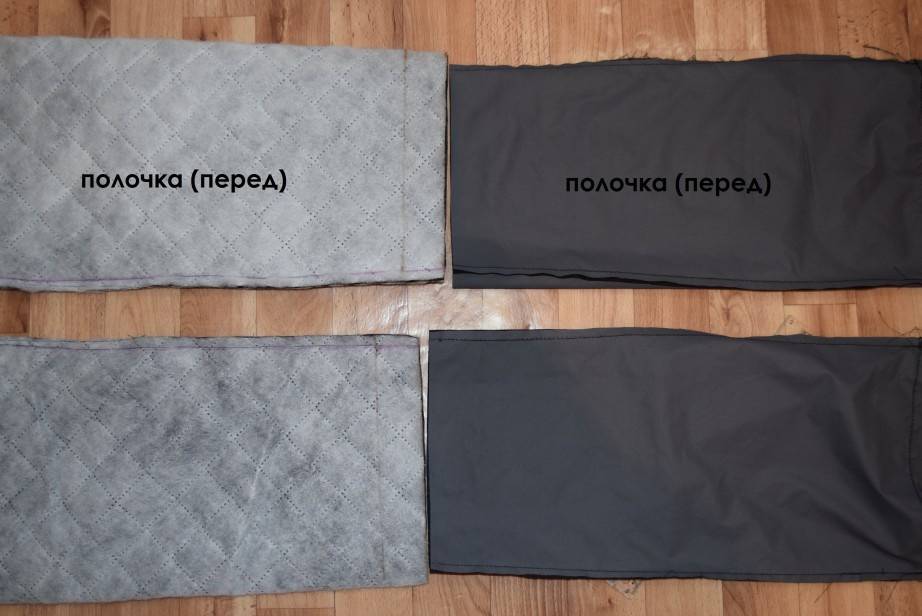 Для каждого карманчика нужны по 2 детали: мешковинка (зеленый цвет) и такая же мешковинка, но с дополнительным бочком (синий цвет).