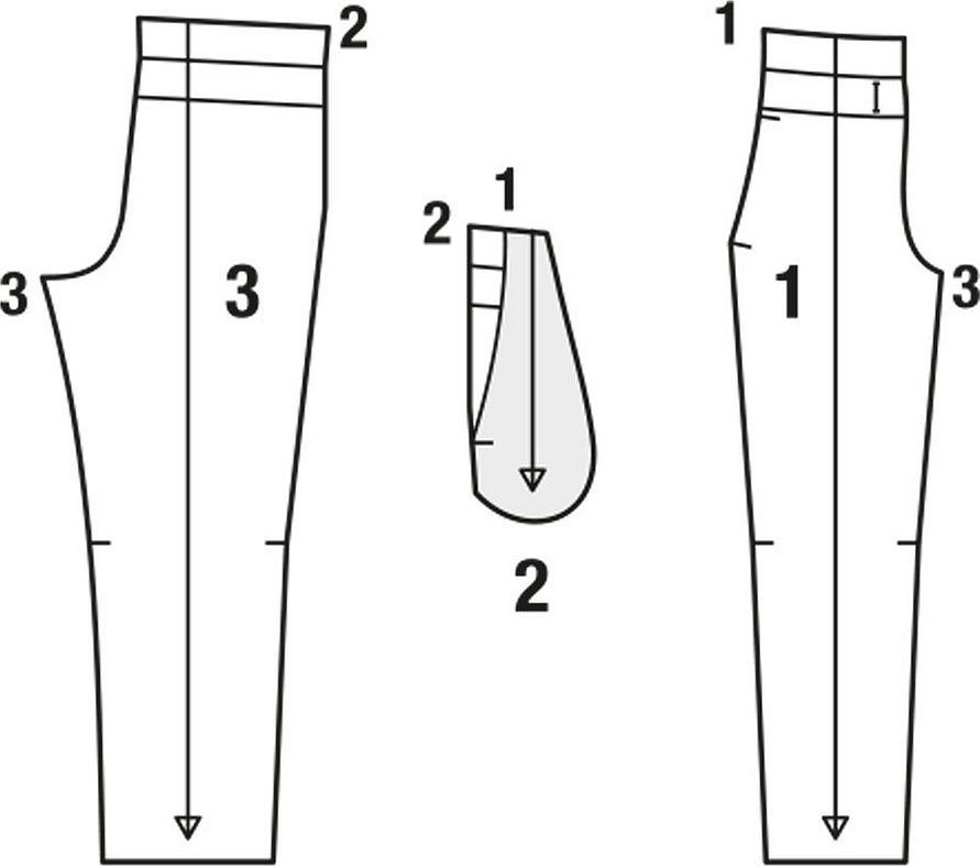 - Выкройка детских штанишек классического фасона брюк трансформируется в схему брюк на резинке.