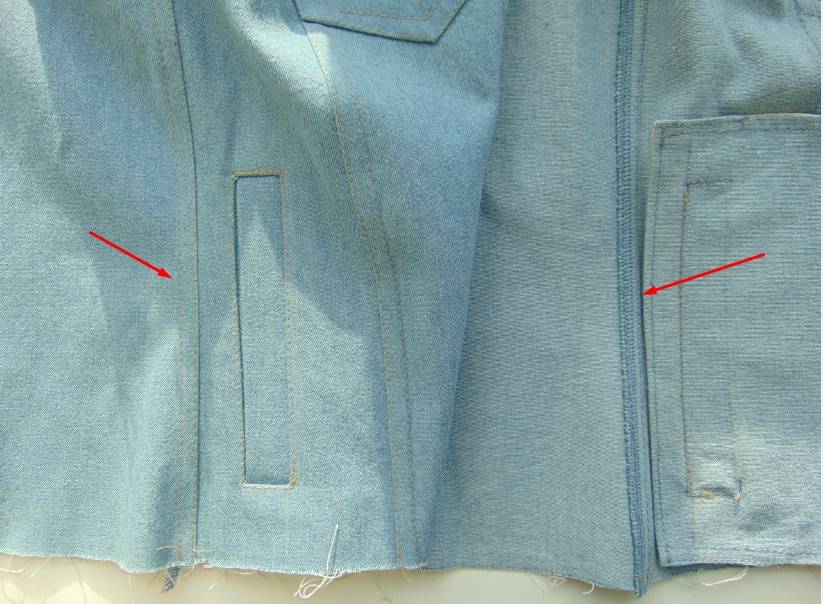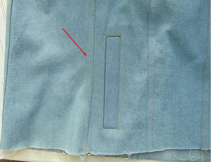 Выкройка джинсовки предусматривает, что рядом с передним краем проймы должен быть расположен карман с клапаном.