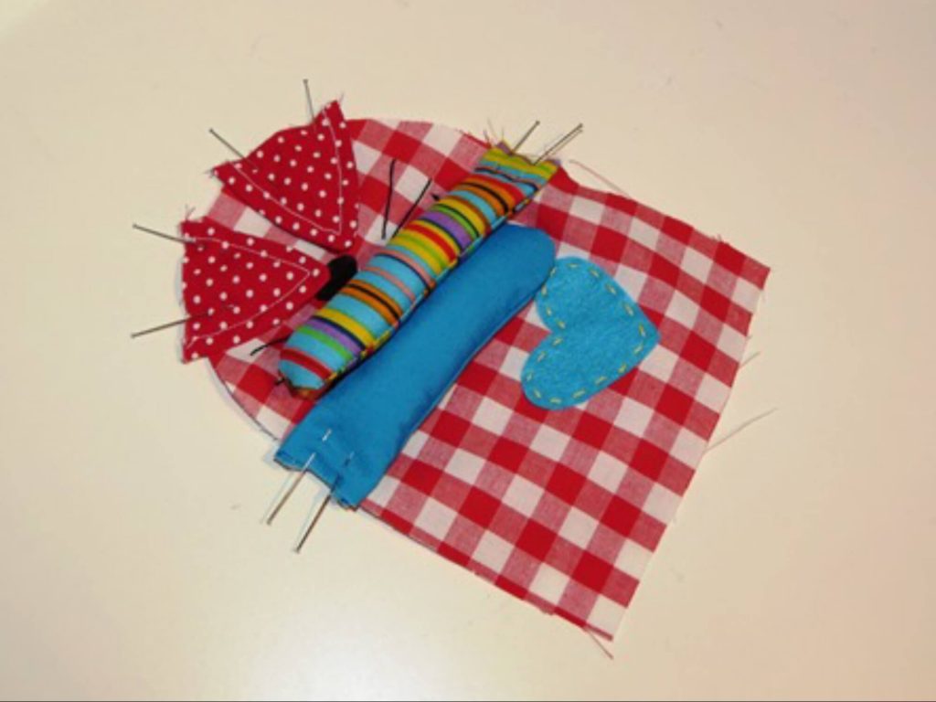 Сначала вырезаются детали, потом сшиваются по изнаночной стороне с учётом припуска на швы. Потом при помощи палочки нужно вывернуть ткань наружу и заполнить внутренности игрушки наполнителем — достаточно плотно, чтобы изделие держало красивую форму.