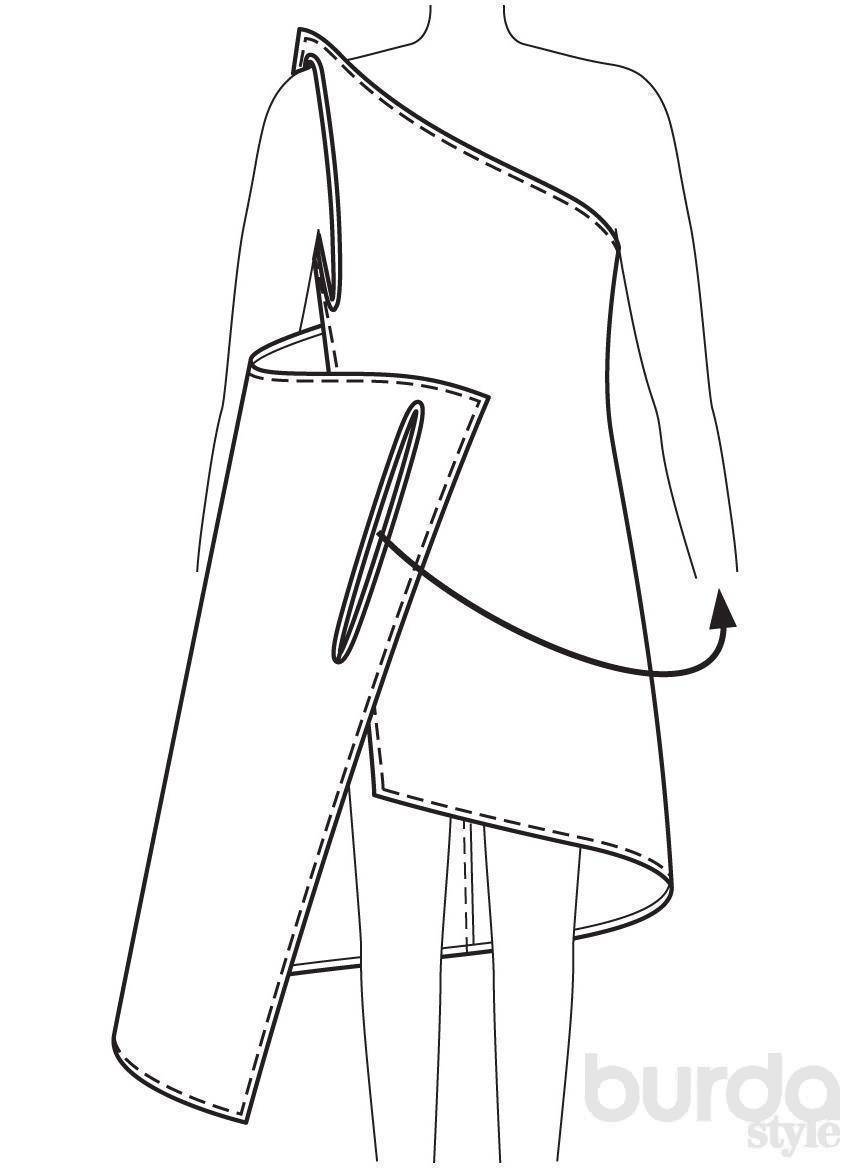 Соединить плечевые швы, припуски прогладить. На левом рукаве соединить верхний шов до отметки, припуски по разрезу рукава необходимо обработать швом зигзаг. Вшить рукав в пройму до нужной линии. По желанию можно сделать волнами на плечи.